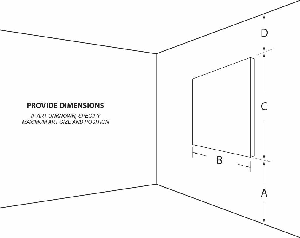 Art Lighting Worksheet Open Ceiling Wendel Product specification and positioning assistance is provided after the submittal. Provide Dimensions A B C D SPECIFY INSTALLATION TYPE EXPOSED SURFACE MOUNT ART LIGHTRECESSED ART LIGHT COMPLETE FOR RECESSED ART LIGHTING FINISH CEILING MATERIAL TYPE: SHEETROCKPLASTERWOOD RECESSED CAVITY ABOVE LIGHT / INDICATE CAVITY HEIGHT FTIN ART QUESTIONS FLAT FINISH ARTGLOSSY FINISH ART *1GLASS COVERED ART *2DARK PAINTING *3MEDIUM HUE PAINTINGLIGHT / BRIGHT COLORED PAINTING ART FRAME QUESTIONS FRAMELESS ARTMEDIUM TO DARK HUED FRAMELIGHT HUED FRAMEDEEP ART FRAME *4 FOOTNOTES *1. GLOSSY ART ABOVE EYES LEVEL WILL REFLECT LIGHT AND SOMETIMES CAUSE VISIBLE GLARE FROM SOME VIEW ANGLES, GLARE CAN SOMETIMES BE MANIPULATED TO OCCUR WHERE NOT NOTICED. *2. LIGHT SOURCE WILL BE VISIBLE ON GLASS COVERED ART ABOVE EYEL LEVEL. SEEING SOURCE CAN SOMETIMES BE MANIPULATED TO OCCUR WHERE NOT NOTICED. *3. DARK ART WILL ABSORB LIGHT AND VISIBLE LIGHT LEVEL MAY APPEAR LOW. *4. DEEP ART FRAME MAY CAST SHADOW ONTO ARTWORK, PROVIDE COMPLETE FRAME DETAILS FOR ANALYSIS. Print